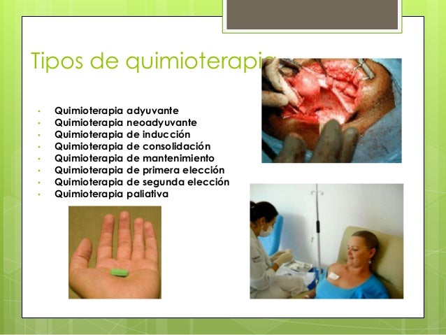 Tipos de quimioterapia y sus efectos secundarios espacio. Tipos de quimioterapia y sus efectos secundarios por dr. Juan cruz baca médico oncólogo en el centro de atención integral del cáncer de christus muguerza hospital del parque. Quimioterapia qué es y cuáles son sus efectos secundarios. Quimioterapia paliativa en pacientes que ya no vayan a ser intervenidos quirúrgicamente por la existencia de metástasis. En este caso la finalidad de la quimioterapia ya no es curativa sino reducir efectos de la patología. Según el modo de administración monoterapia se suministra un solo fármaco al paciente. Efectos secundarios de la quimioterapia cancer. Jyoti patel (en inglés), adaptado a partir de este contenido.La quimioterapia trata muchos tipos de cáncer de forma eficaz. Pero al igual que otros tratamientos, a menudo causa efectos secundarios. Los efectos secundarios de la quimioterapia son diferentes para cada persona. Efectos secundarios de la quimioterapia cancer. Jyoti patel (en inglés), adaptado a partir de este contenido.La quimioterapia trata muchos tipos de cáncer de forma eficaz. Pero al igual que otros tratamientos, a menudo causa efectos secundarios. Los efectos secundarios de la quimioterapia son diferentes para cada persona. Quimioterapia cancer. La quimioterapia es el tratamiento de primera opción para muchos tipos de cáncer y casi siempre se usa como tratamiento sistémico. Esto significa que los medicamentos viajan a través de todo el cuerpo para llegar hasta las células del cáncer, adondequiera que se hayan propagado. Qué es la quimioterapia cancer. La quimioterapia es el uso de fármacos para destruir las células cancerosas. Actúa evitando que las células cancerosas crezcan y se dividan en más células. Como las células cancerosas suelen crecer y dividirse más rápido que las células normales, la quimioterapia tiene mayor efecto en las células cancerosas. Quimioterapia medlineplus enciclopedia médica. Con frecuencia, la quimioterapia se administra en una clínica especial o en el hospital. Algunas personas pueden recibirla en su casa. Si la quimioterapia se administra en casa, el personal de enfermería domiciliario ayudará con los medicamentos y con las vías intravenosas (iv).